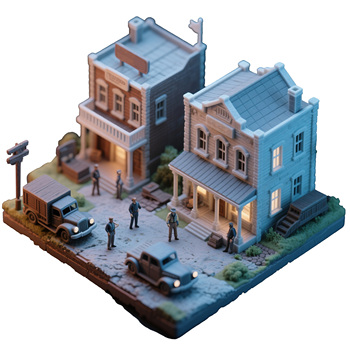 Personalizado 3D Impresso Vintage Street Diorama Retro Construções Modelos Históricos Movendo Figurinhas Veículos para Displays Collectible